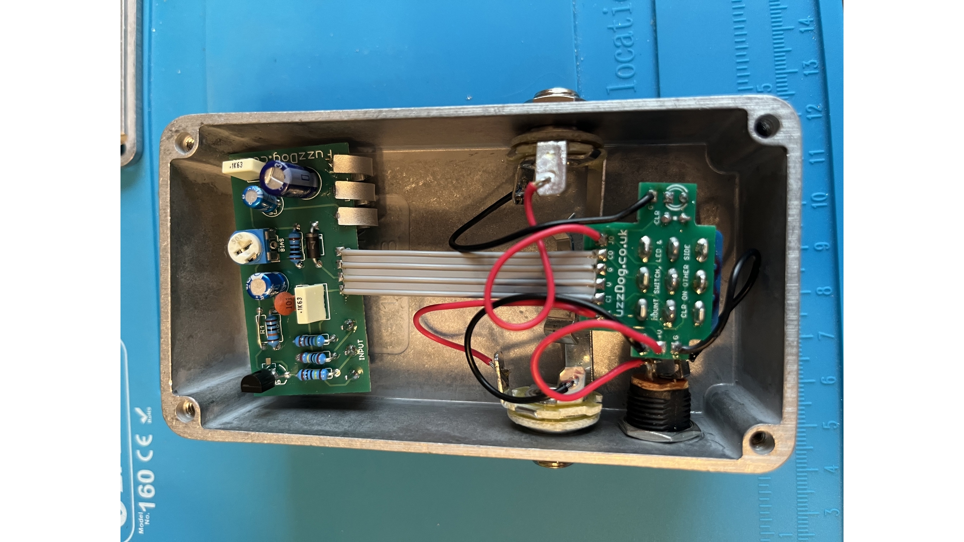 Enclosure (pre-drilled) is available as an option with full kits, and can take a battery if desired with footswitch positioned 22mm higher, closer to the controls. Knobs are not included.