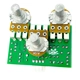 Supplied with board-mounted pots with round shafts, so you'll need set-screw fitting knobs).