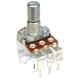 W-taper 16mm Alpha potentiometers. Available with splined shaft and horizontal mounting pins, or round shaft with vertical pins