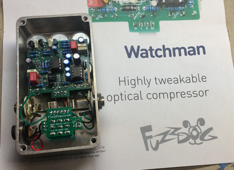 Full kit: As above, plus footswitch and appropriate daughterboard/components for your selected bypass type (see Downloads section for details of those), jack sockets, DC socket, battery snap, hook-up wire, LED.